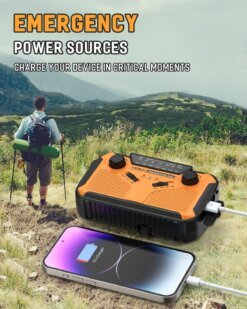 PRUNUS J-369 11100mWh Emergency Weather Radio, AA Batteries/Hand Crank/Solar/USB Charging, NOAA/AM/FM, LED Flashlight and Reading Lamp,SOS Alarm & Flashlight