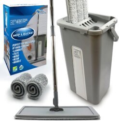 TDBS The Dustpan and Brush Store Floor Mop Bucket Set − Easy Squeeze Bucket, Flat with 2-Pack Replacement Microfibre Pads for All Floors Types, Grey
