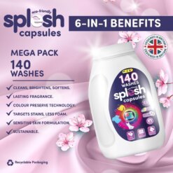 Splesh 3 in 1 Washing Liquid Laundry Detergent Capsules for sensitive skin – 140 washes