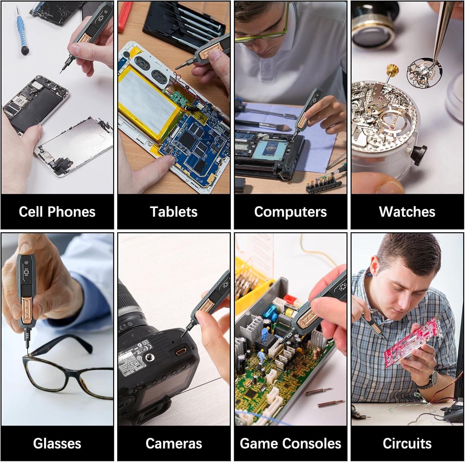 - Multifunctional Multiple Bit Screwdriver: Our tool kit has 162 interchangeable screwdriver bits for laptops, computers, iPads, MacBooks, iPhones, mobile phones, coffee makers, kindles, doorbells, Xbox, PS5, gaming consoles, cameras, RC cars, watches, eyeglasses and more. Whether you are repairing and upgrading electronics, appliances, or home DIY projects, this comprehensive and professional screwdriver set will meet your needs.