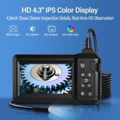 - 4.3-inch IPS Display: Endoscope camera with light adopts a 4.3-inch color IPS screen that allows you to view images in real time; Inspection camera with light captures 1080P HD images in real time; The large buttons and controls are easy to figure out, easy to operate, you can use it immediately when it is powered on; Snake camera with light built-in battery can work continuously about 3.5 hours; Note: The endoscope cannot take photos and videos