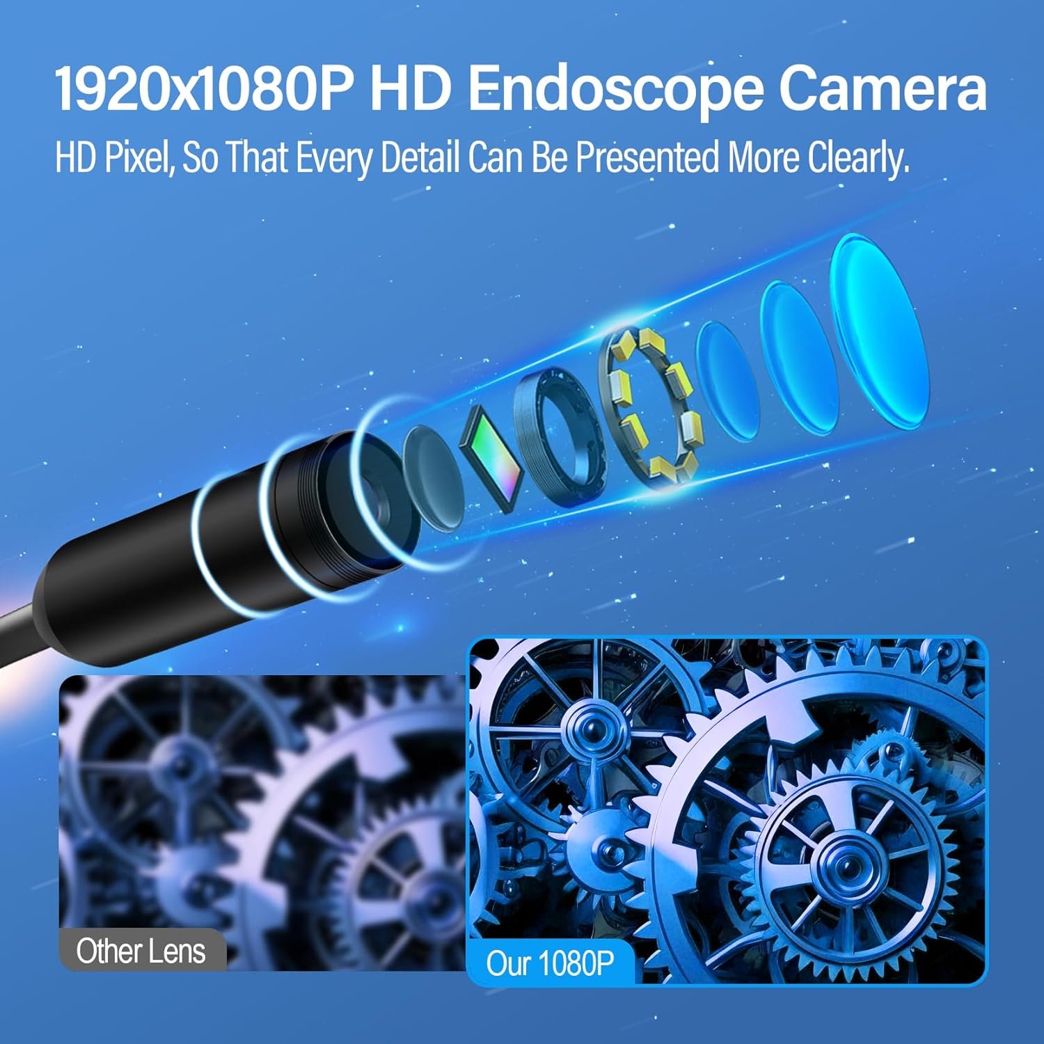 - Wide Applications: Endoscope camera with light adopts the 2nd CMOS chip which supports the highest recording frame rate, and solved the problem of picture delay; Sewer camera allowing for real-time observation and navigation; It is an excellent tool for car maintenance, mechanical inspection, pipe repair, household appliance inspection, house maintenance, wall structure inspection, sewer/ drain inspection, HVAC repairs, and home DIY etc