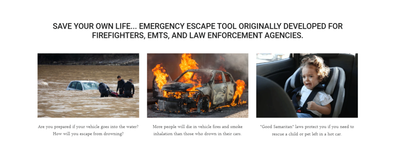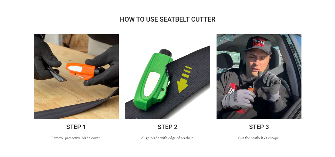 J'ai acheté ces brise-vitres après les avoir vu à l'action. Super efficace en cas d'accident ils peuvent vous sauver la vie. Le coupe ceinture est très sécurisé et efficace comme le brise vitre, ils ne tiennent pas trop de place, s'accrochent facilement sur le rétro, sont bien visibles avec leur couleur fluo et se détachent facilement en cas d'urgence (il n'y a qu'à tirer dessus).