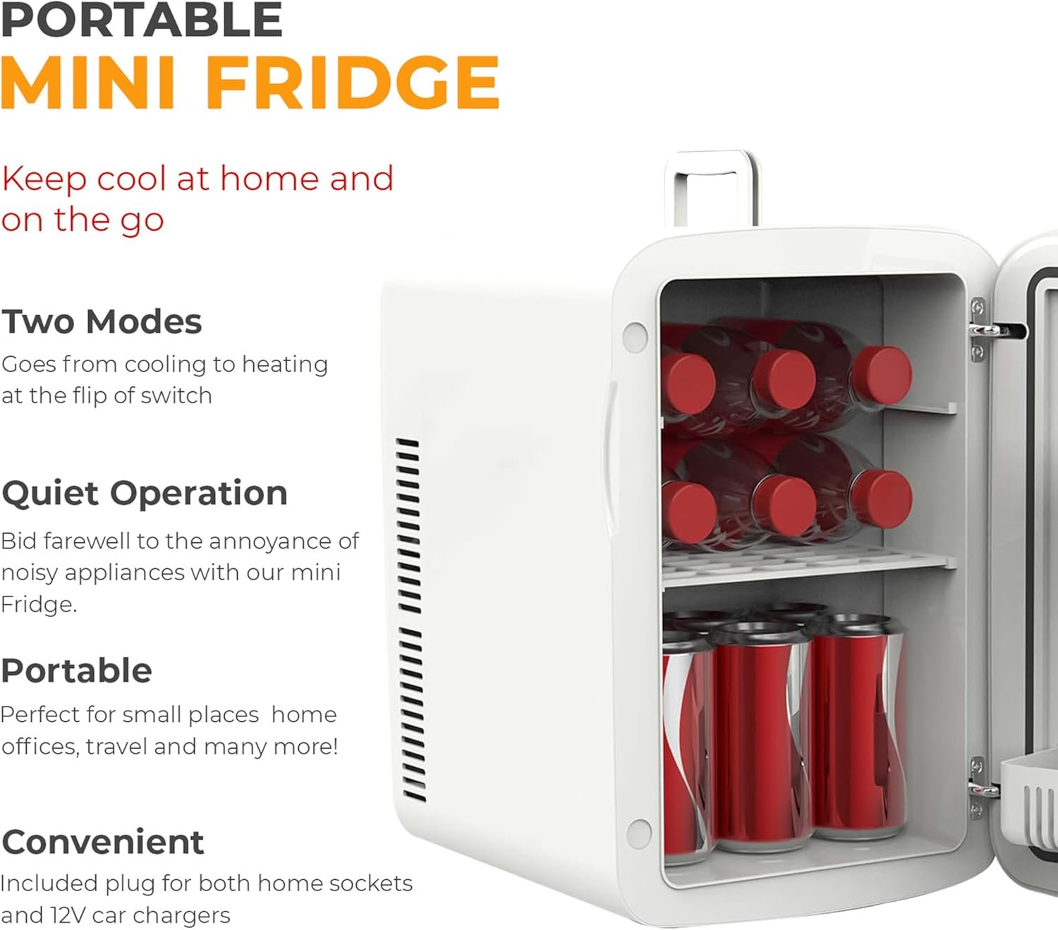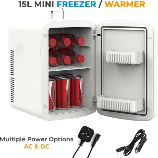 - [DUAL-FUNCTION CONVENIENCE]: This mini-fridge is your go-to solution for both cooling and warming your items. With a minimum cooling temperature of 5°C at 25°C ambient and a maximum heating capability of 50-65°C, it’s versatile enough to handle your drinks, food, skincare, and more.