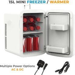 - [MULTIPLE POWER OPTIONS]: Whether you’re on the road or at home, we’ve got you covered. This mini-fridge comes with two plugs in the package – a 12V car plug and a 220-240V home plug, ensuring you can use it wherever you need it.