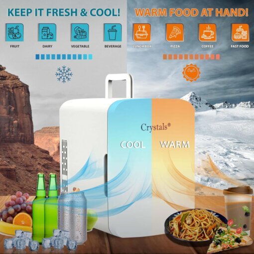 - [VERSATILE AND STYLISH]: This mini-fridge is not only a space-saving solution for your office, home bar, or RV but also an attractive addition to your decor. Use it to keep your beverages chilled or your food warm, and even enhance your skincare routine with its cooling effect. It’s the perfect multi-functional addition to your lifestyle.