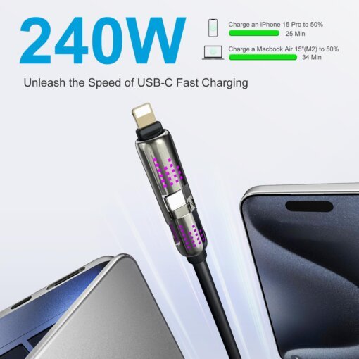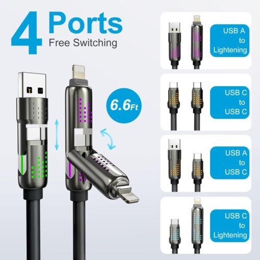 - Note: 【USB C Cable cannot be used with thick phone cases】 【4 in 1 charging cable for all devices】 This 4-in-1 USB-C fast charging data cable supports fast charging and data transfer, and is compatible with iPhone, iPad, Samsung Galaxy, MacBook and other devices. 4in1 charging cable has four connectors: USB-C to C, USB-C to L, USB-A to C, and USB-A to L, simplifying your charging and synchronization experience. The thickened gold-plated copper core improves stability and speed, supports 240W fast charging, and no longer worries about carrying multiple cables when traveling or on business trips.
