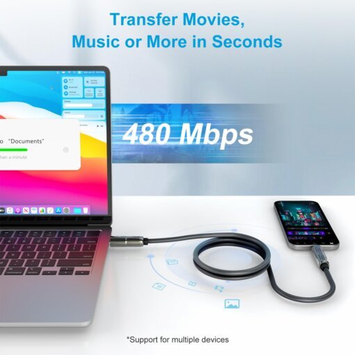 - 【240W ultra-fast charging】240W USB-C fast charging cable delivers ultra-fast charging and data sync for a wide range of devices. Experience ultra-fast usb to c cable with the USB C to USB C port: Charge your iPhone 16 to 96% in just 35 minutes and transfer data at 480Mbps—perfect for quick backups with 1200 songs per minute. With a 240W max output, it ensures seamless charging for iPhone, iPad, Samsung, MacBook, and more.