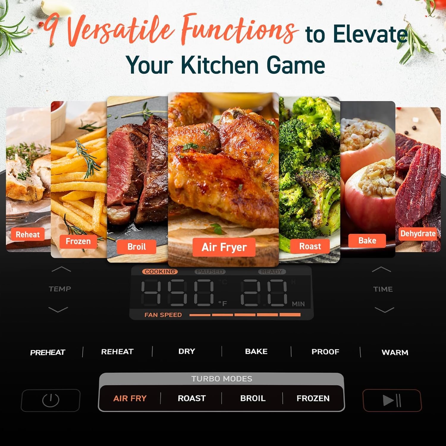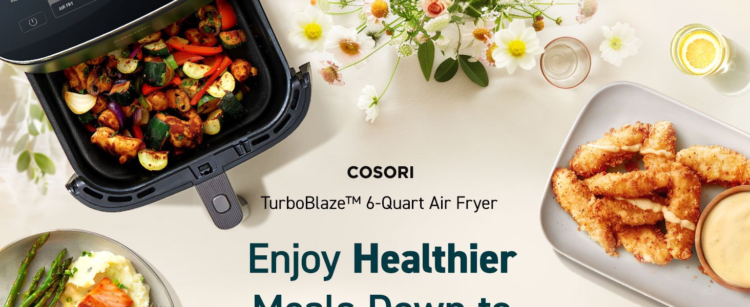 COSORI Air Fryer 9-in-1, Compact & Large 6 Qt, 5 Fan Speeds with 450F for Fast Crispy, 95% Less Oil, 100+ In-App Recipes with 19+ Nutrients, Roast, Bake, Dehydrate, Reheat, Frozen, Broil, Proof, Gray