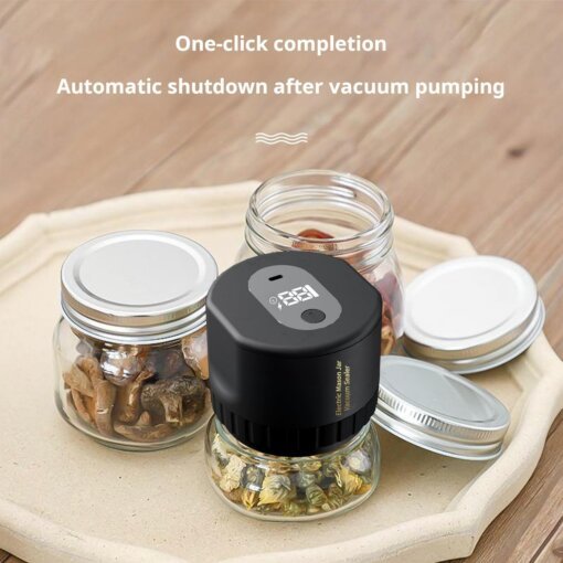 - 1.【EFFICIENT SEALING】: Our electric Mason jar vacuum sealing machine uses advanced vacuum sealing technology to quickly and effectively seal Mason jars, maintain the freshness and taste of food, and ensure the safety and health of food.