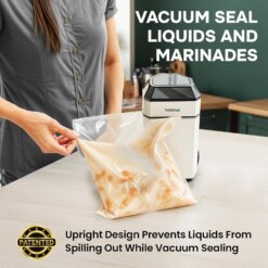 - NO-SPILL, NO-LEAK DESIGN: Upright food vaccum sealer seals from the top to prevent spills and leaks during the process, making it ideal for soups, stews, and other liquids. Provides secure sealing for liquids, preventing spills and messes in your refrigerator or freezer.