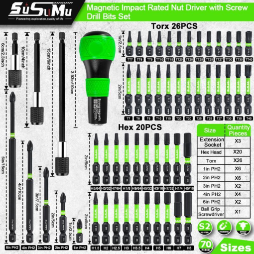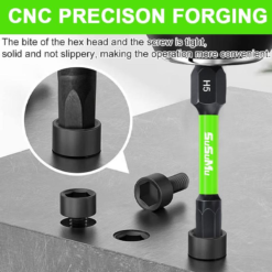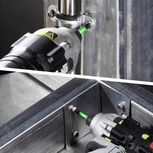 - Tough heat-treated impact torsion screwdriver bits that provide improved durability and reduced breakage