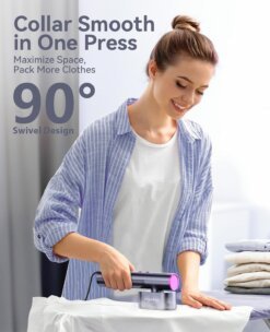 - EASY-TO-USE HANDHELD STEAMER: The Handheld Steamer compactly combines a 5 oz. water tank, LED display, compact size, 15s fast heat-up, pouch, dual voltage, flat and hanging ironing, and auto shut-off in the K1 Iron, making it ideal for one-handed operation, and the tank capacity is good for ironing up to 3-5 loads of clothes at maximum steam output, with a maximum runtime of 10 minutes.