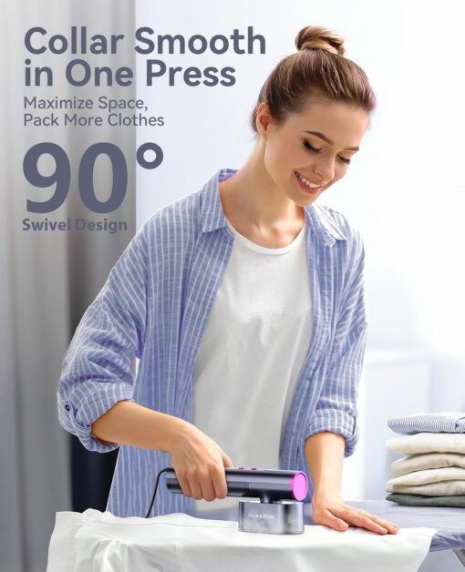 - TRAVEL PORTABLE HANDHELD SIZE STEAMER: Jack & Rose portable travel mini clothing steamer is compact and easy to hold, measuring 10.23×3.9 inches, 1.6 Ib is consistent with a 750ml bottle of mineral water. But the wrinkle removing function is not comparable to the full size steamer, rotating steam head maximizes space and easy to fit into backpack travel case. Deluxe travel bag for easy packing.7.2ft cord and high temperature heat-resistant plate are easy to use.