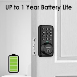 - 🔒Security deadbolt: it is a reliable home protection assistant, with a sturdy aluminum alloy, IP54 weather resistance, long term durability, anti peeping user code protection, low battery indicator, solid lock cylinder.