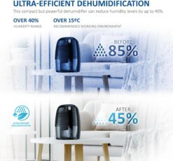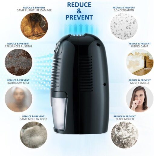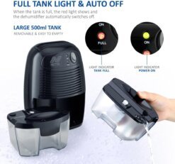 - SMALL AND COMPACT: Ideal for small bedrooms, kitchens and even cupboards, this compact dehumidifier is perfect for removing excess moisture and ensuring your rooms do not suffer from damp. Due to it’s compact size, you will be able to place this dehumidifier almost anywhere you could ever need it.