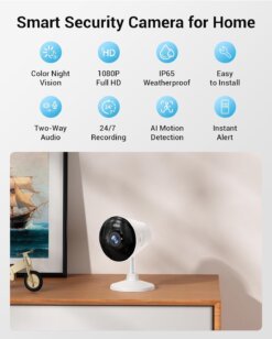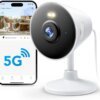 - Support 5GHz & 2.4GHz Dual-Band WiFi – The Rocktone indoor security camera supports 5GHz and 2.4GHz dual-band WiFi connection. Dual-band WiFi can reduce interference with other wireless devices, improve network performance and stability, and provide you with more flexible WiFi device connection options, suitable for various home and office environments—no more worries about device incompatibility.