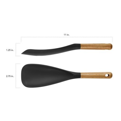 - This cooking utensils set includes two unique cooking spoons. The large spoon is perfect for cooking, serving, mixing, and stirring. The deep and wide design allows you to effortlessly handle more food or soup.The long spatula spoon is specifically designed for scooping small food and scraping salsa. This silicone spoons set is an essential kitchen tool for various daily cooking.