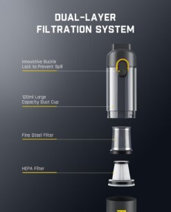 - Ultra Light Cordless: Only 1.2lbs (540g), a bottle of water weighs,with the cordless design allows you to easily handle sand, dust and debris in every corner of the car with one hand
