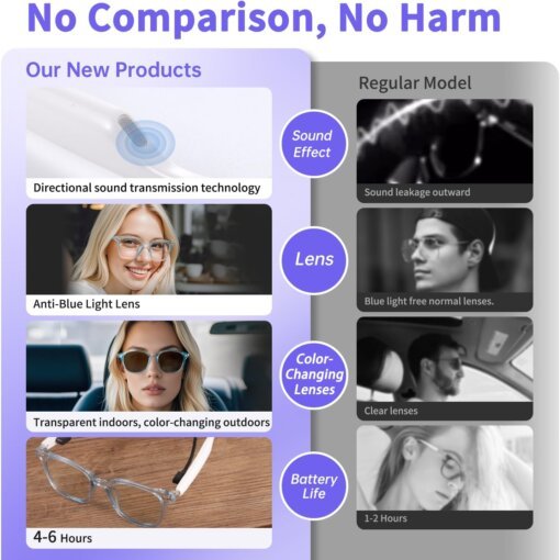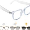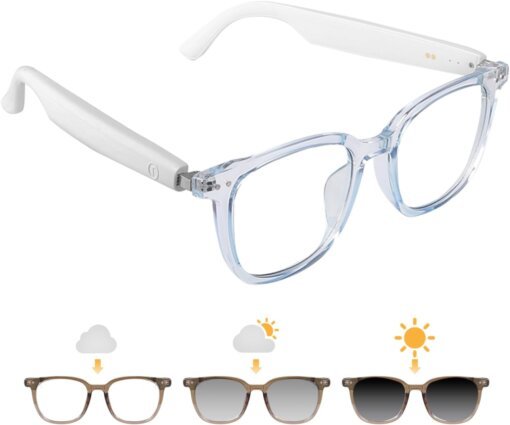 - 【New Design】 Smart glasses with UV400 polarized photochromic lenses, the lenses of the audio glasses can be discolored from clear and blue light resistant indoors to dark and UV resistant outdoors, providing superior color, clarity and contrast while effectively filtering out harmful glare and sunlight damage to protect your eyes anytime, anywhere!
