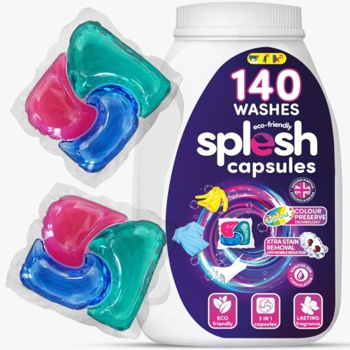 Splesh 3 in 1 Washing Liquid Laundry Detergent Capsules for sensitive skin – 140 washes