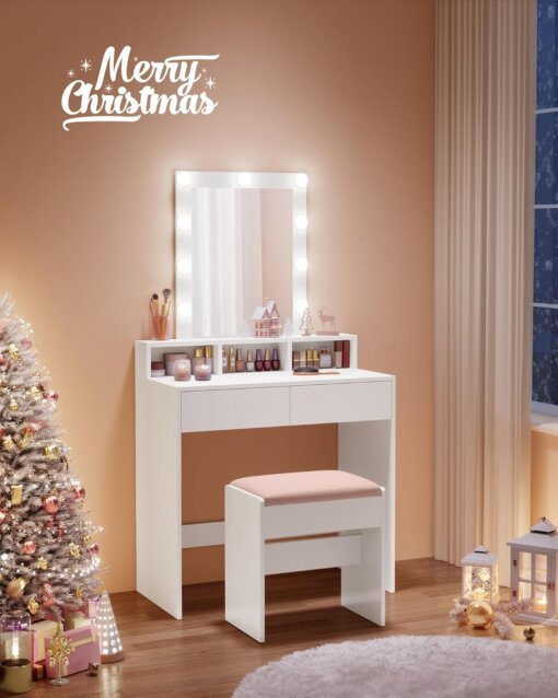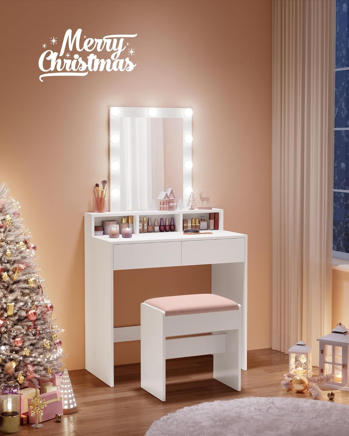 - [Sturdy and Easy to Clean] Made from quality particleboard, this makeup station is sturdy and durable. Its surface is wear-resistant and easy to clean, so you can enjoy long-lasting use