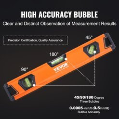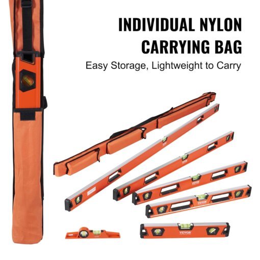VEVOR Magnetic Torpedo Level, 78/48/32/24/16/10 in Mechanical Level Set, Bubble Vials Ruler for 45/90/180 Degree, Aluminum Alloy Leveler Tool w/Viewing Window, Shock-Resistant for Plumbing, Wood