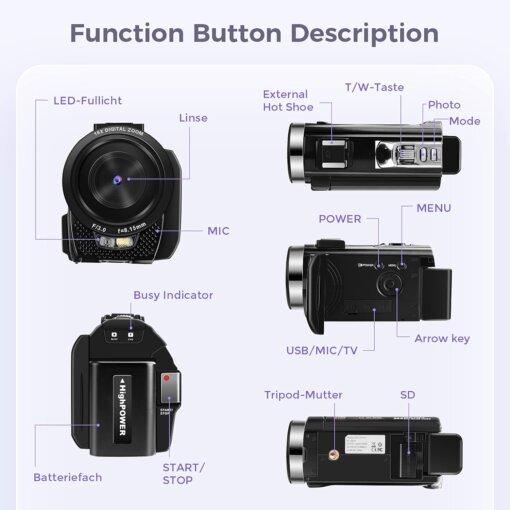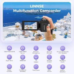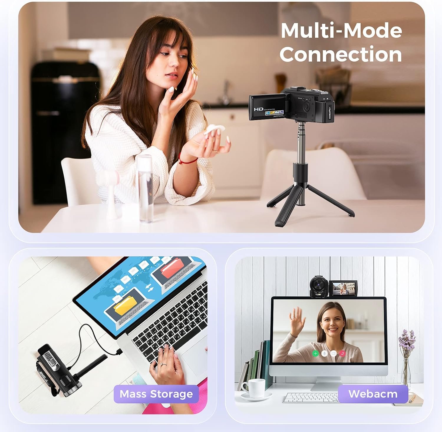 - 【PORTABLE CAMCORDER】 It is a small and lightweight Rotatable Camcorder, portable for you to carry around. This Flip Screen Camera can support external LED light and standard tripod but not support external microphone(LED light and tripod are not included). A good Video camera for photography beginners students kids.