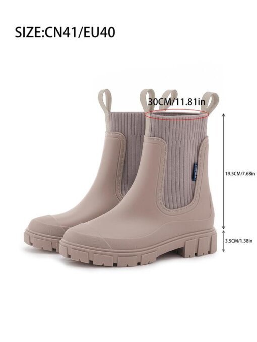 Women’s Solid Color Waterproof Rain Boots, Water Shoes, 2024 New Style Fashionable Round Toe Boots for Outdoor Wear