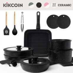 【Ceramic】Kikcoin 22 pcs pots pans set Nonstick complete Cookware Set with Lids,Detachable Handle